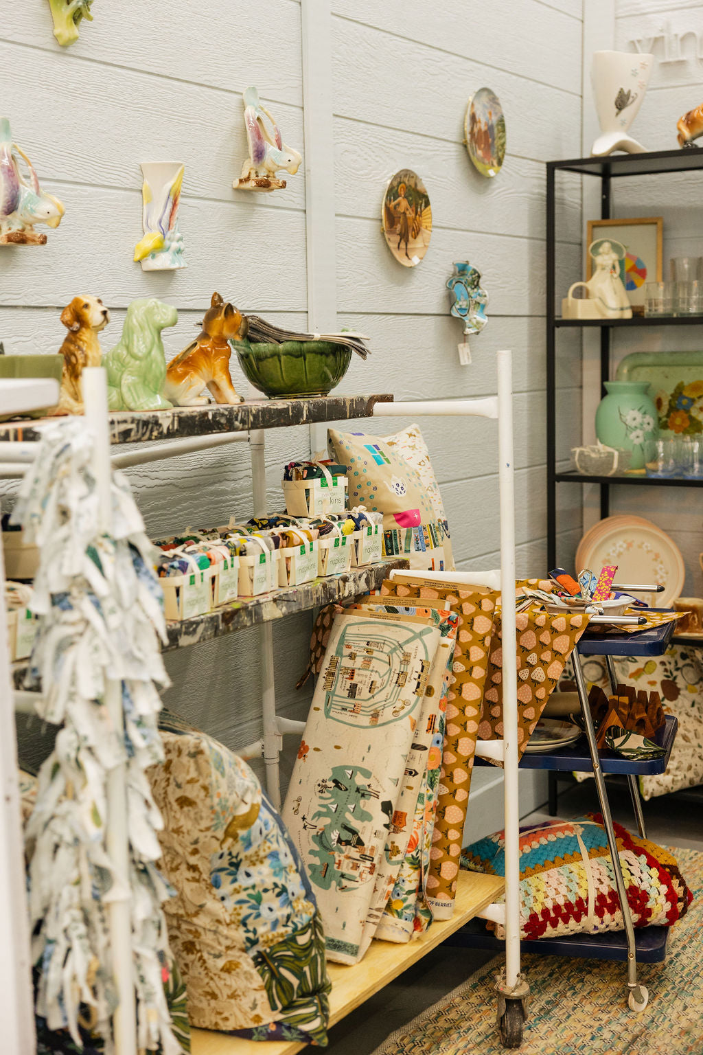 Known for its cozy, colorful ambiance, the shop offers a delightful array of handmade goods and vintage treasures. Sarah specializes in creating big, bold tea towels, napkins, and pillows, each piece reflecting her unique style and attention to detail.